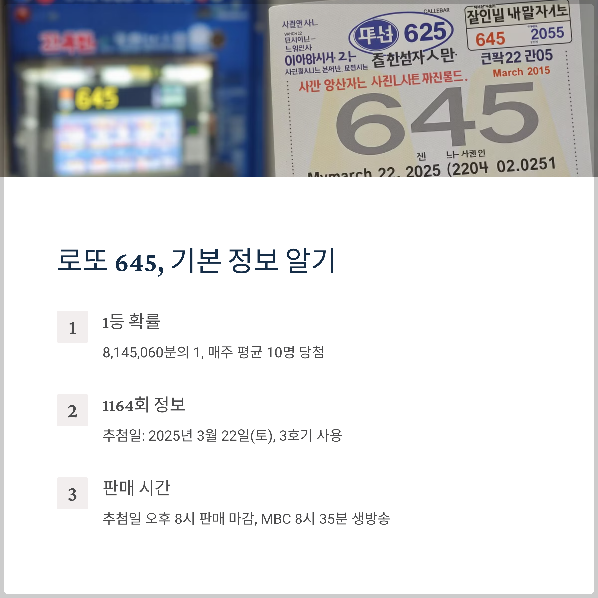 이번 1164회 로또에서 여러분에게도 행운이 함께하길 바랍니다! 만약 이 글을 보고 당첨되신다면, 소소한 후기 댓글 부탁드려요~ 😉